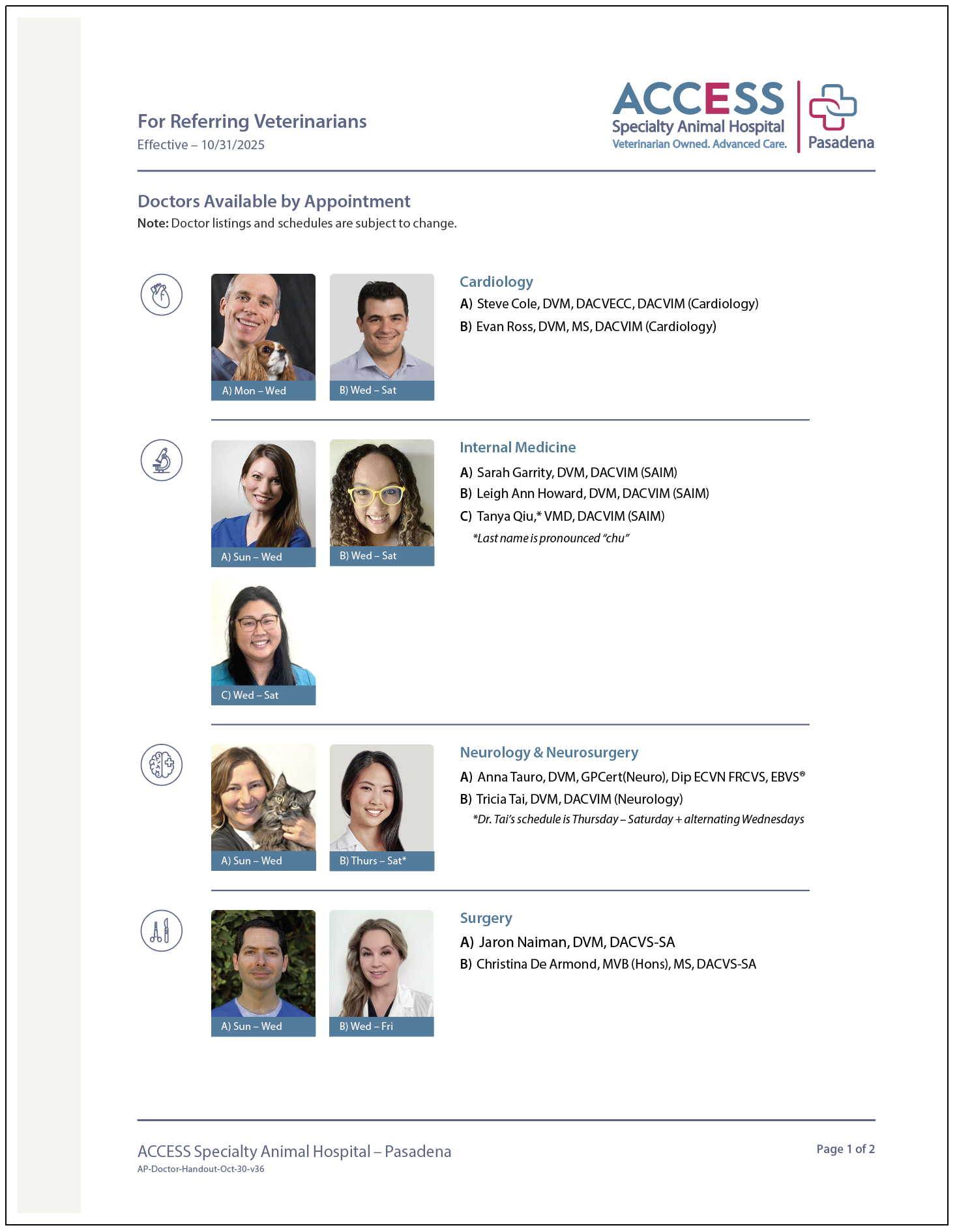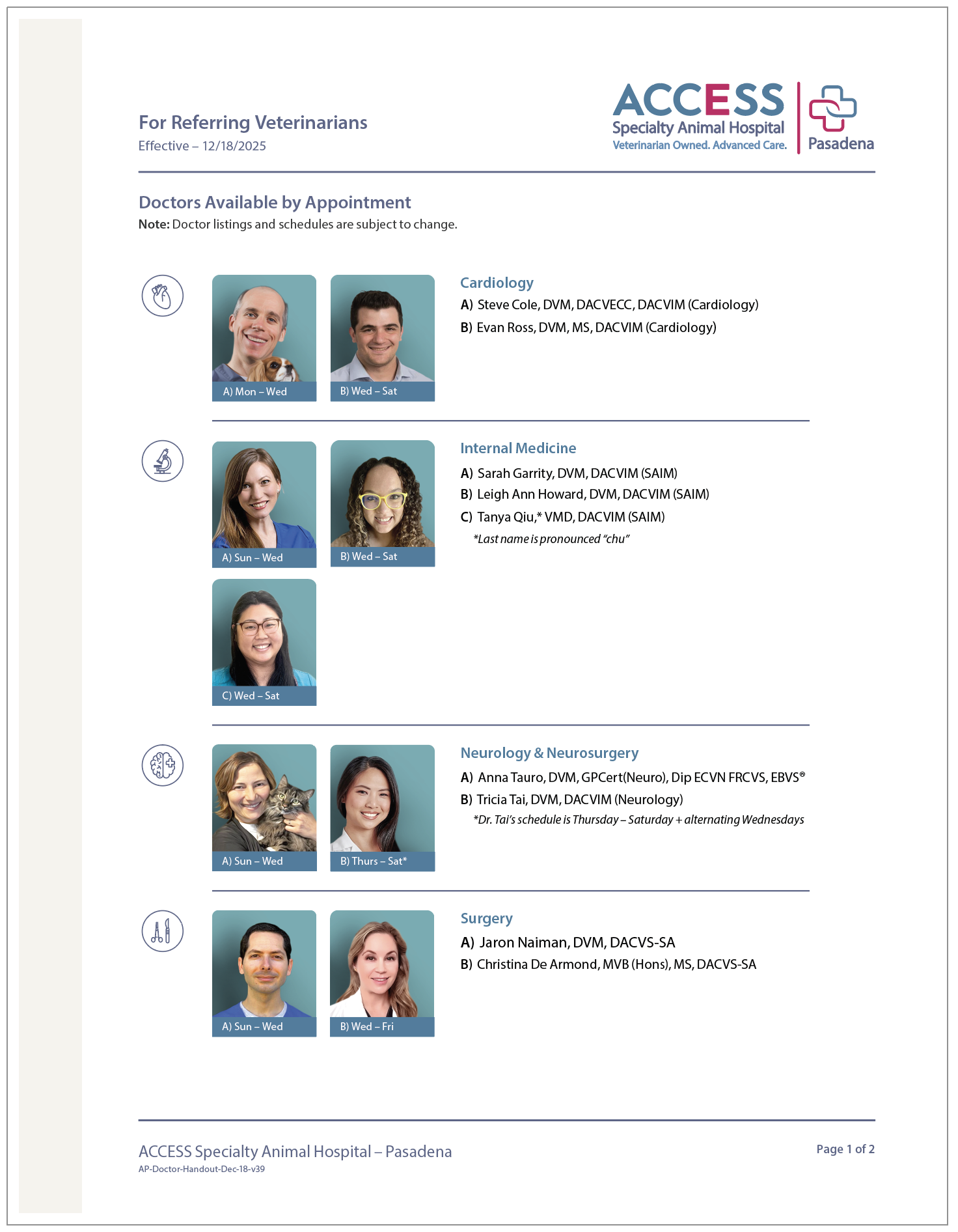 At ACCESS Specialty Animal Hospital – Pasadena we always value our relationship with our referring veterinarians as the primary medical provider for your clients’s pets.